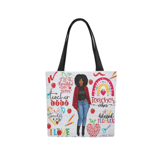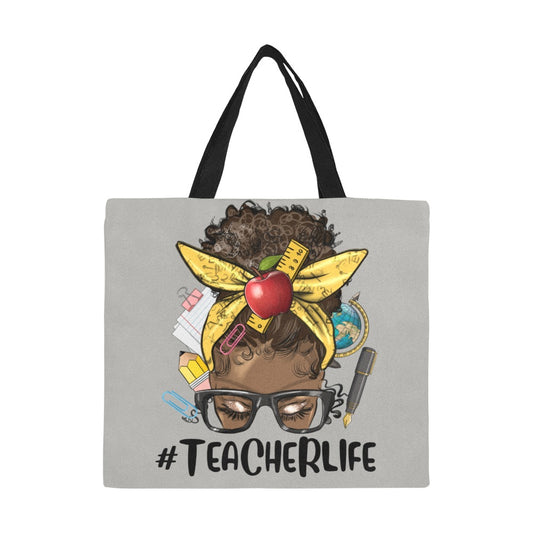 Afro_Messy_Bun_Teacher_Life_grey All Over Print Canvas Tote Bag(Model1699)(Large)