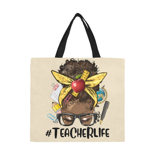Afro_Messy_Bun_Teacher_Life_ All Over Print Canvas Tote Bag(Model1699)(Large)